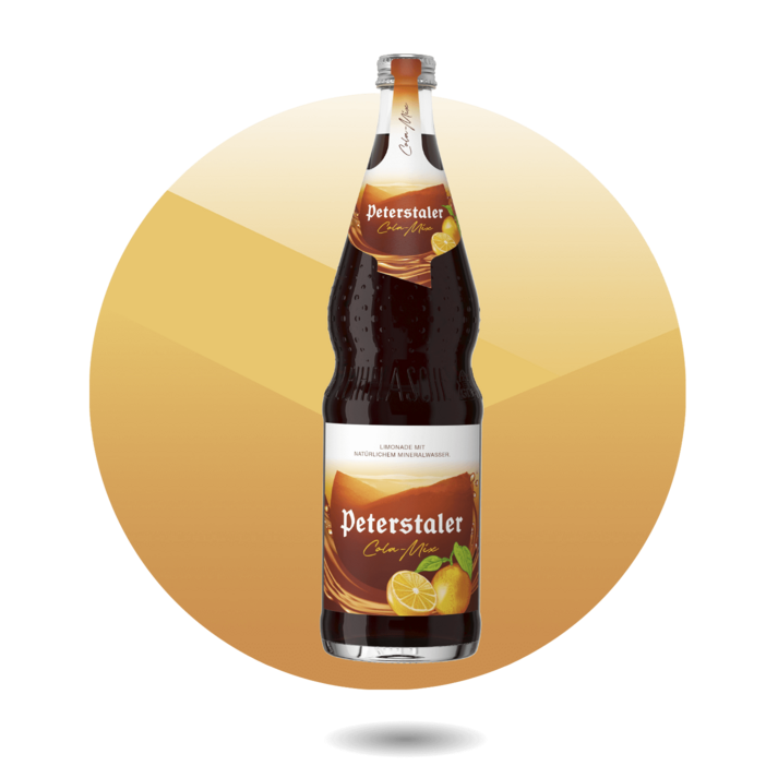 Peterstaler Cola-Mix ist die spritzig-anregende Limonade mit Cola-Orangen-Geschmack und dem natürlichen Mineralwasser des Schwarzwaldes. Koffeinhaltig und mit Kohlensäure.